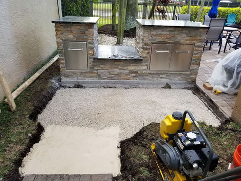 Outdoor kitchen island and stone pavers installation